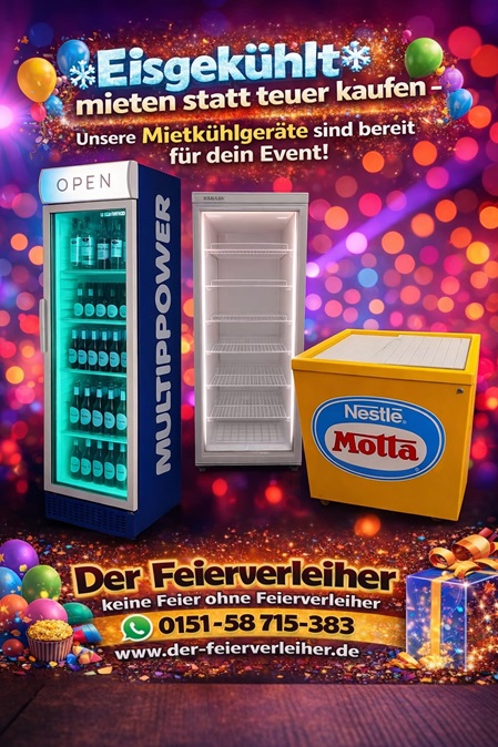 "Eiskalt feiern leicht gemacht - miete dir jetzt deinen Getränkekühlschrank!"