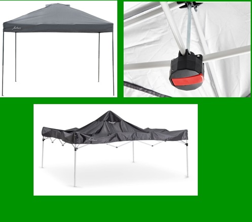 Durch ein besonderes Falt- und Verriegelungssystem sind diese Pavillons von einer Person innerhalb von 2 Minuten aufgestellt!