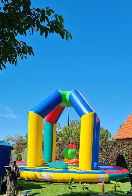 Die Hüpfburg hat zwar schon einige Gebrauchsspuren, was allerdings den Hüpfspaß keinesfalls stört...