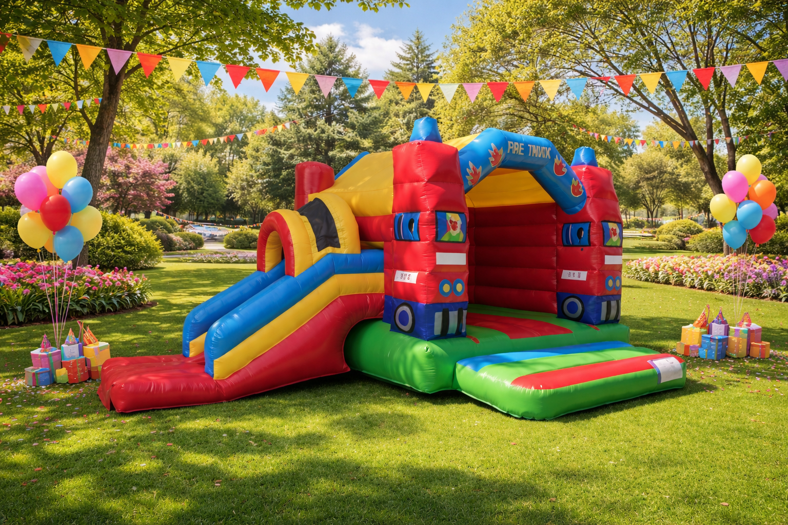 Ein unvergesslicher Tag mit unserer Multifun-Hüpfburg zum Thema Feuerwehr.